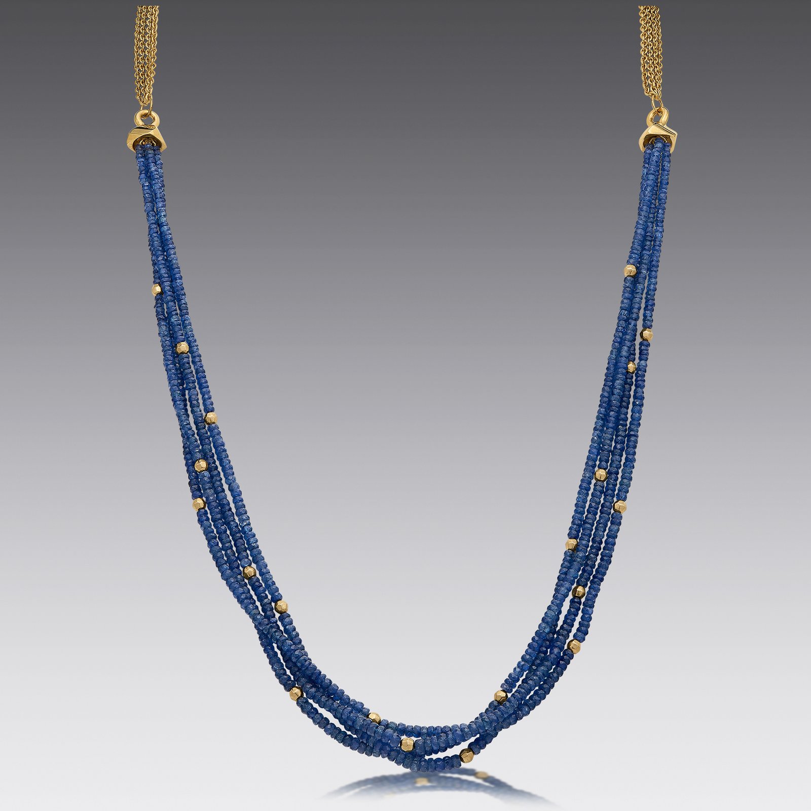 You’ll turn heads while wearing this layered Baubles necklace. With richly saturated rough sapphires and 18kt gold beads woven throughout, it’s a study in blue. Pair with other pieces from the Baubles Collection to complete your look. – 18kt yellow gold – 191.30cttw rough sapphires