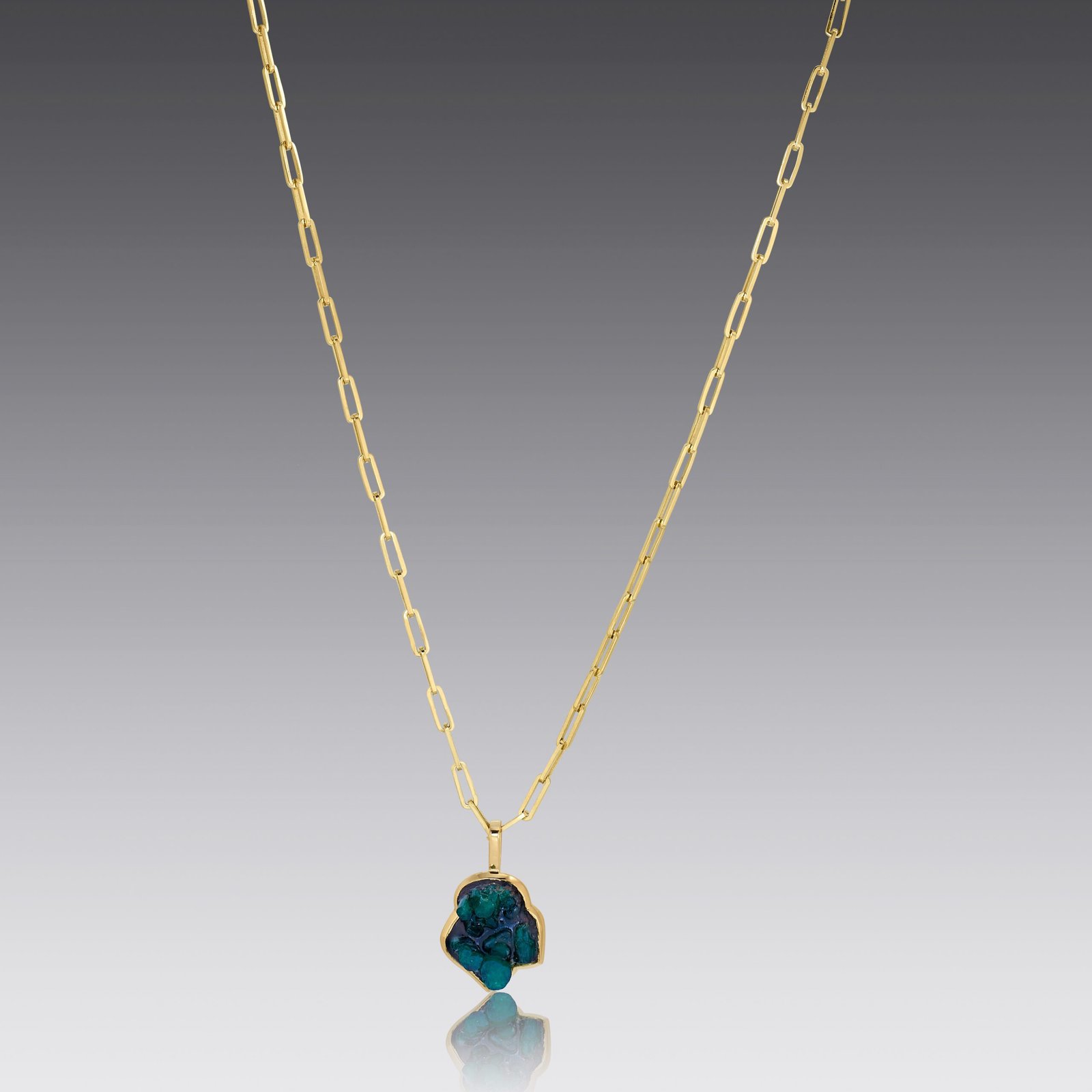 Dahlia Yellow Gold Rough Emerald Pendant and Paper Clip Chain