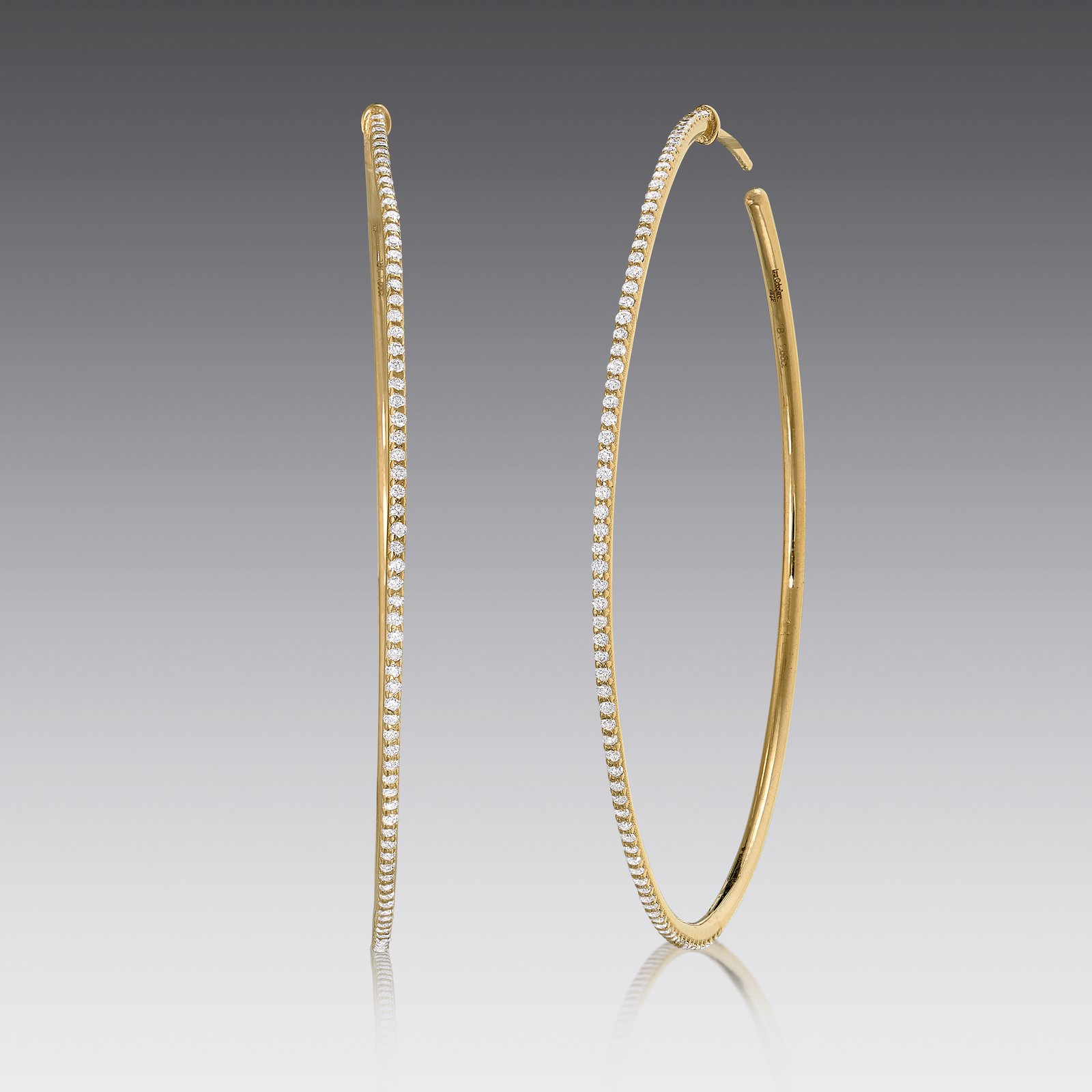 Shimmering white diamonds transform the classic hoop into the perfect earring to wear from day to night. – 18kt yellow gold – 1.56cttw diamonds